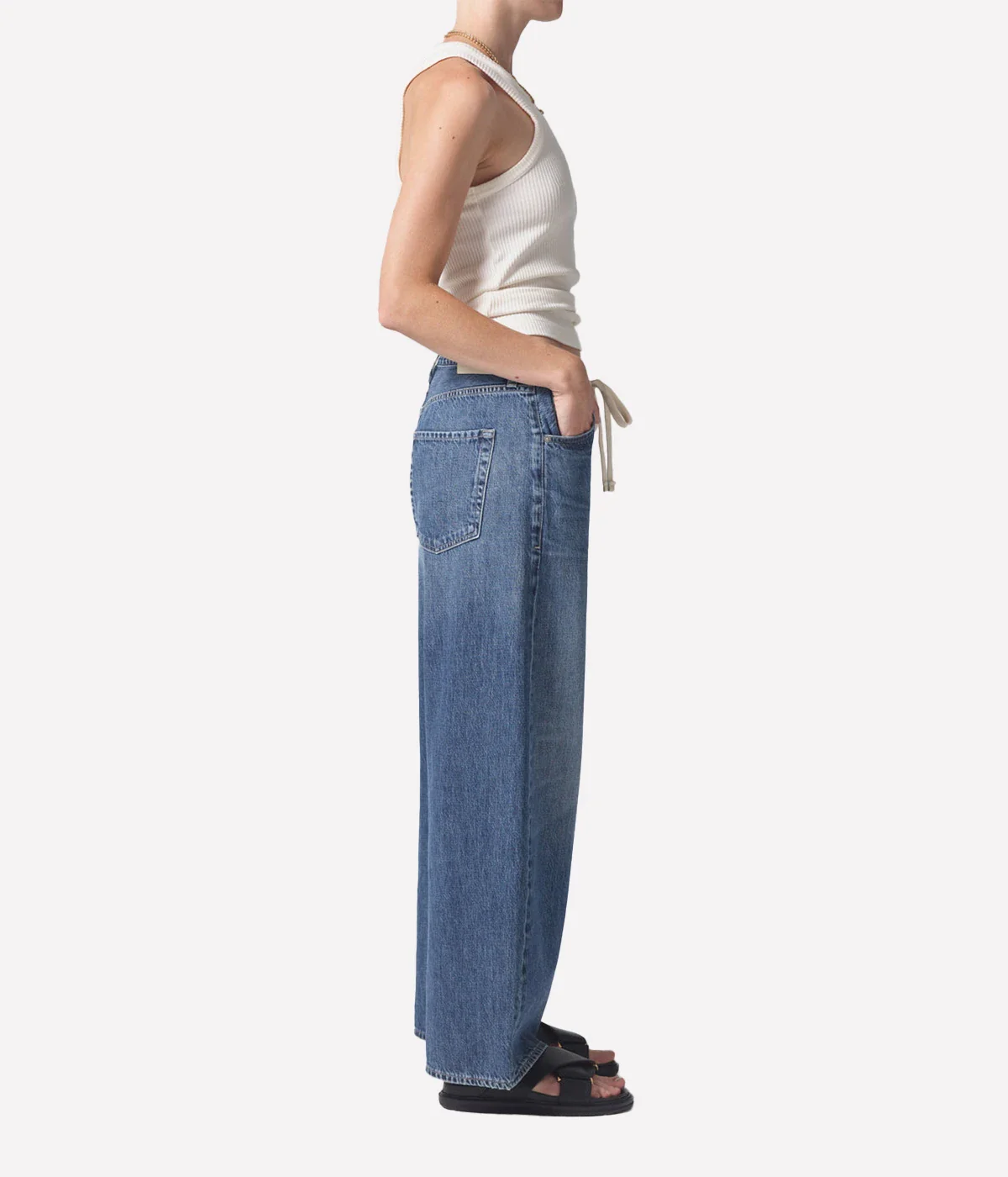 The Brynn Jean offers a laid-back yet elevated approach to everyday dressing, designed in lightweight organic cotton denim for all-day comfort. Featuring a wide-leg silhouette and drawstring waist, this full-length style combines relaxed tailoring with refined versatility—ideal for beachside strolls or dressed-up dinners.