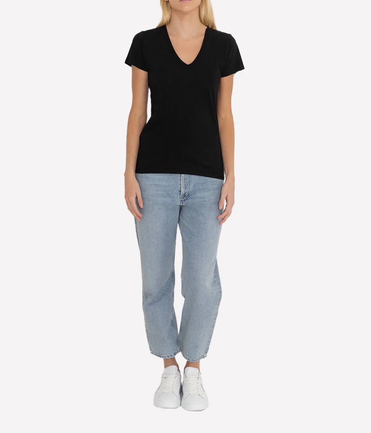 Carol V Neck Tee in Jet Black