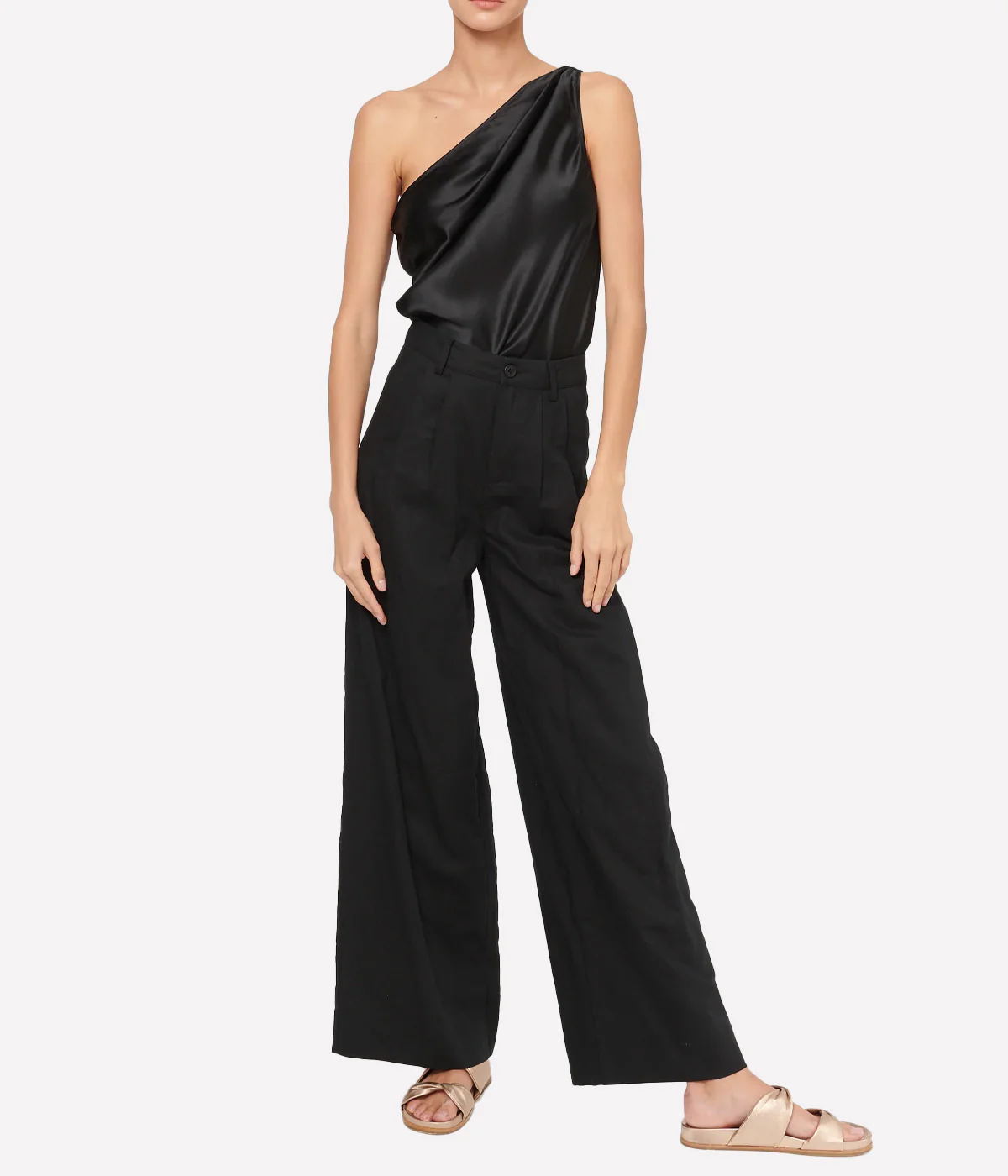 Constructed with silk stretch charmeuse, the Darby Bodysuit is a comfortable and effortless fit. The asymmetrical draped neckline adds a sophisticated touch to a one-shoulder style.