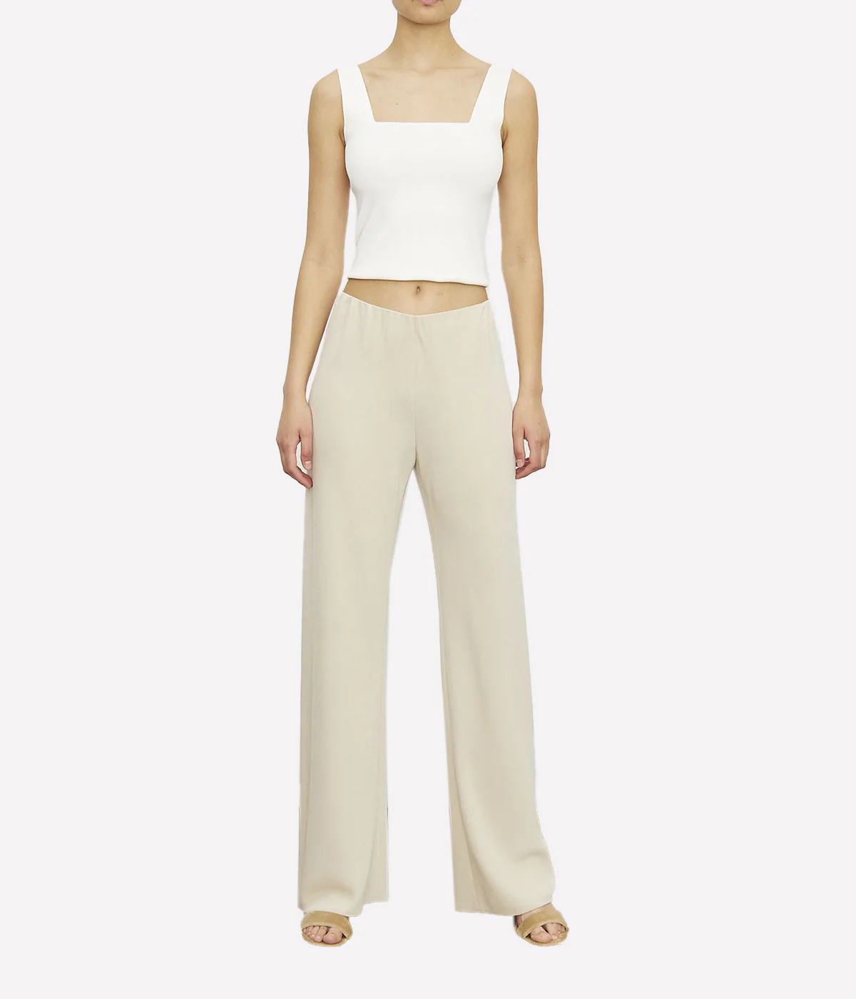 The Vince Soft Crepe Pant offers a chic, relaxed fit, crafted from a soft crepe fabric. Cut on the bias for a flattering silhouette, these pants feature an elasticated waistband and a pull-on design for easy wear. Whether dressed up or down, they provide the perfect combination of comfort and sophistication.