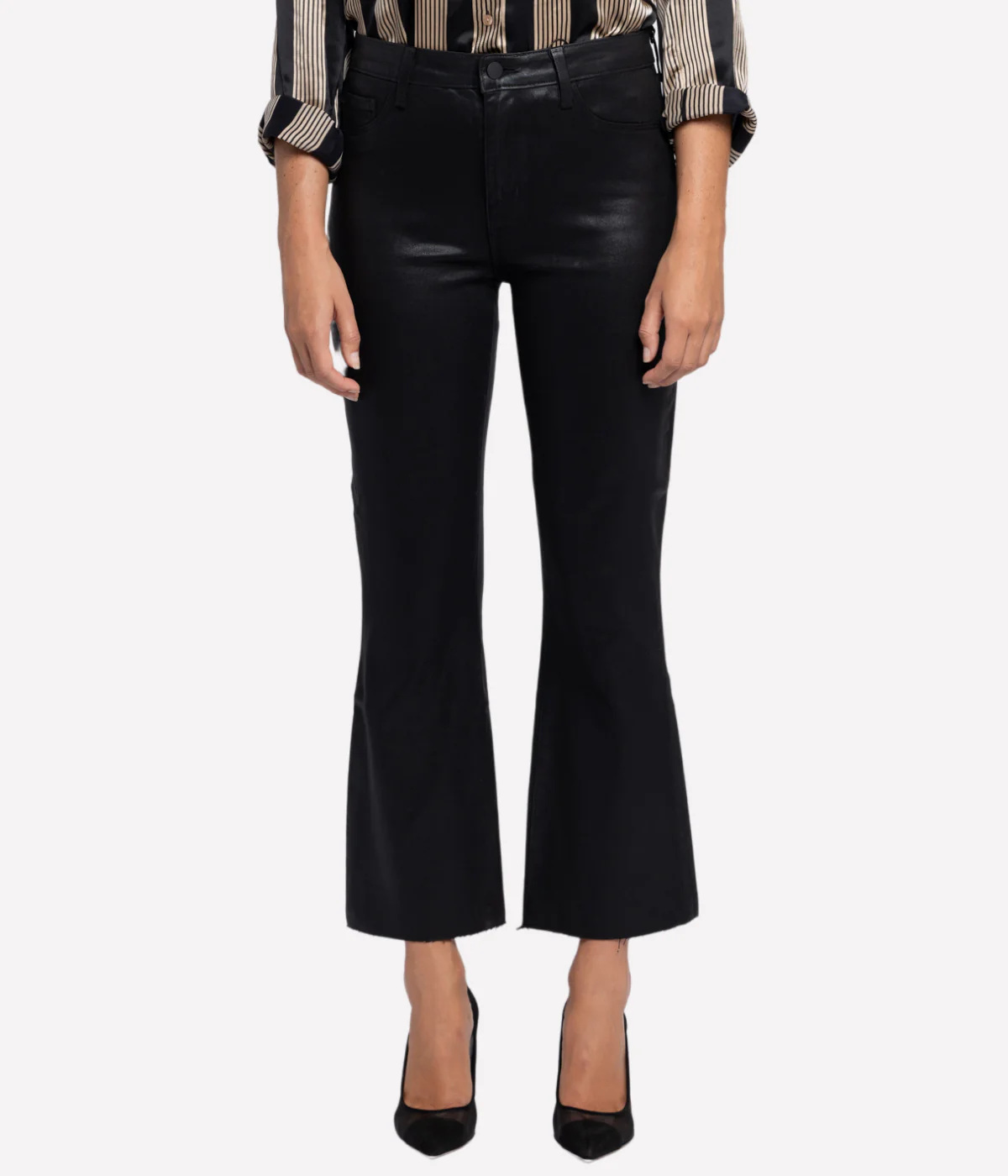 L’Agence updates the Kendra Jean for fall in their signature lustrous premium coated denim. Featuring a cropped silhouette with flared hems, these jeans pair beautifully with pumps or ankle boots. With a hint of stretch, they offer a comfortable yet ultra-luxe fit for any outfit.