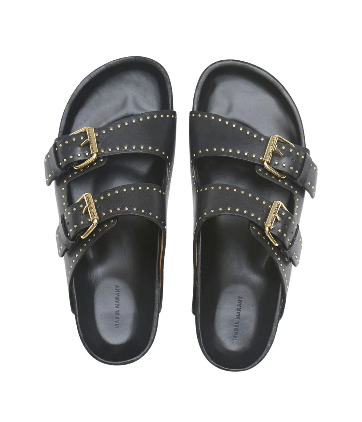 The Lennyo Sandal in Black Leather by Isabel Marant combines edgy detailing with a refined, everyday silhouette.