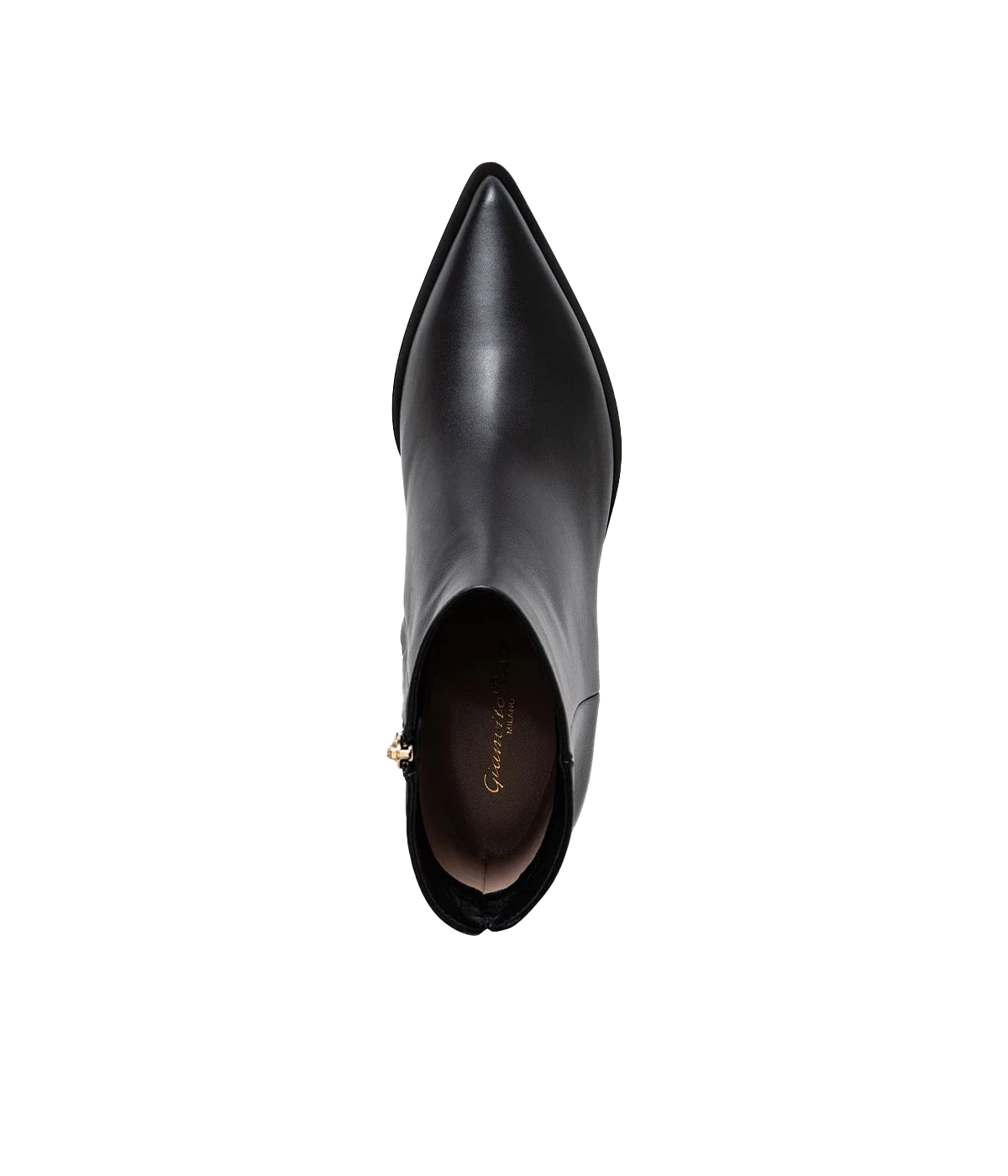 Crafted from leather, Lyell 45 is a pointed-toe fitted bootie with a 45mm block heel covered in matching leather.
