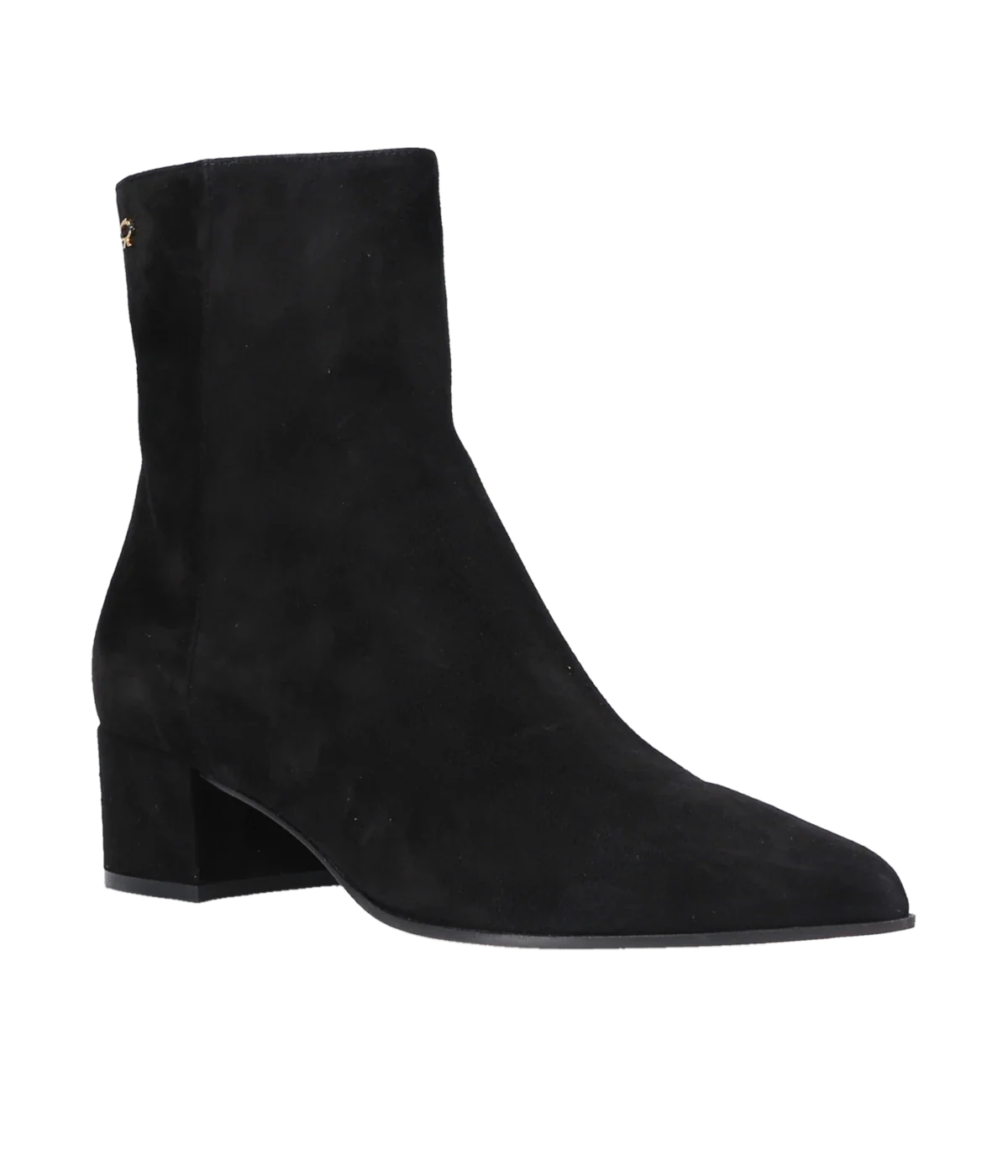 Expertly crafted with a sleek suede material and leather block heel, the Lyell 45 Suede Boot in Black offers both style and comfort. The pointed toe and beige sole add a touch of sophistication, while the leather lining and easy zip closure provide practicality. Perfect for any occasion.