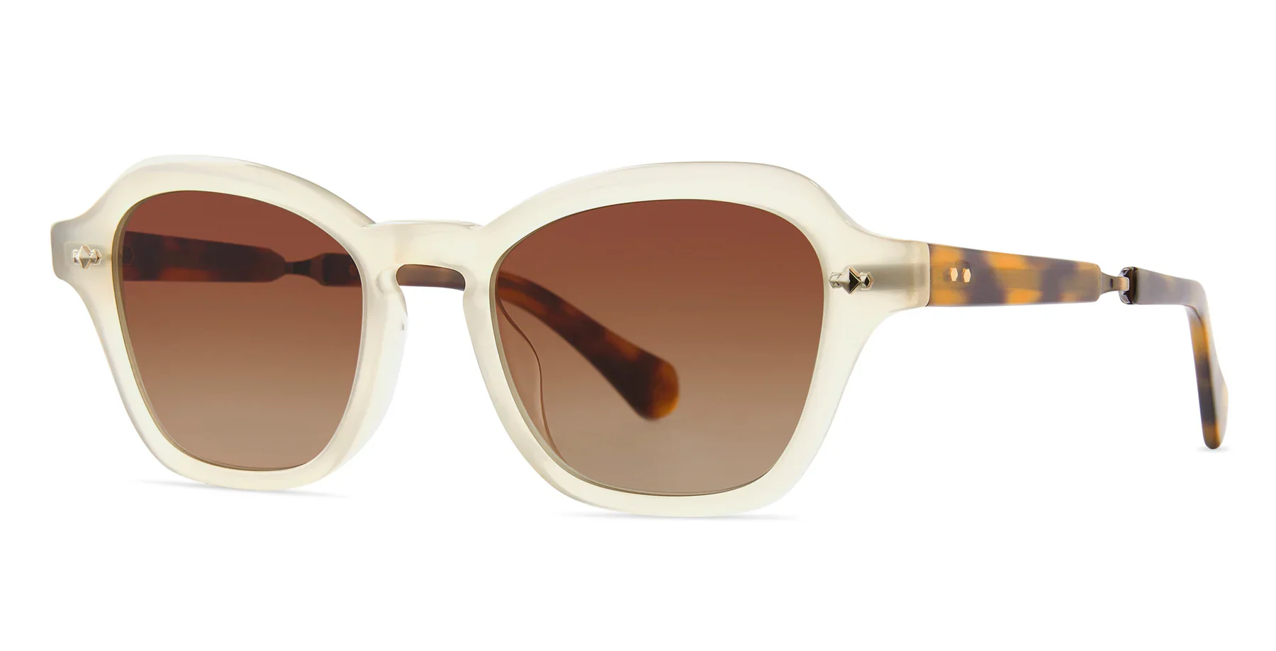 Rell femme sun 50 features a refined butterfly silhouette with soft curves and a balanced, feminine profile. Handcrafted in Japan, the frame is designed for comfortable everyday wear, combining subtle vintage character with a clean, polished finish. Finished in a white gold tone with CR39 lenses, it delivers a timeless look with considered detailing.