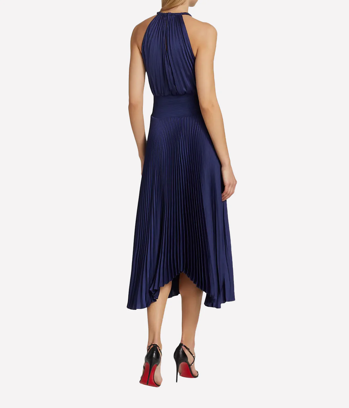 - Midi-length silhouette with all-over pleating for texture and movement.